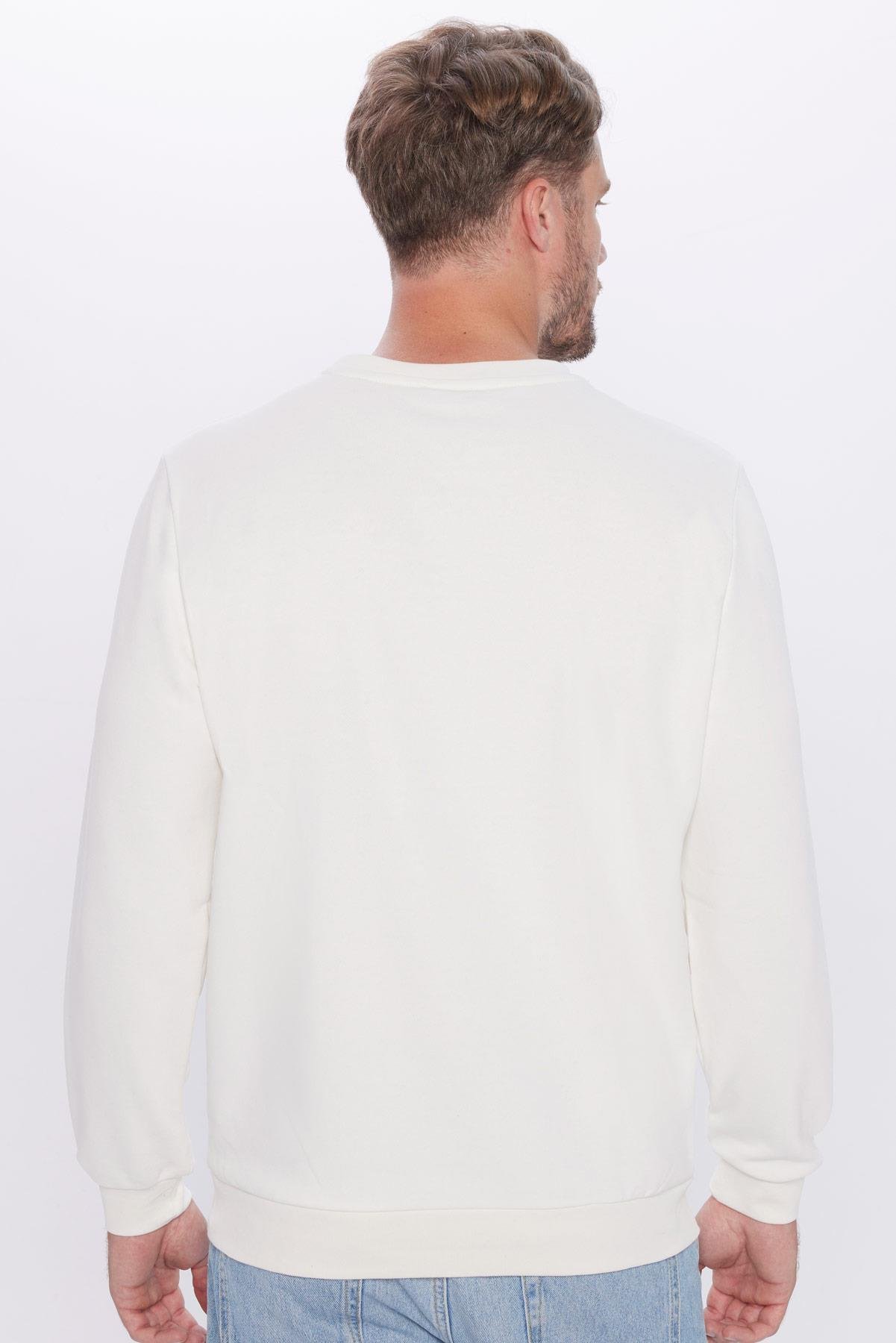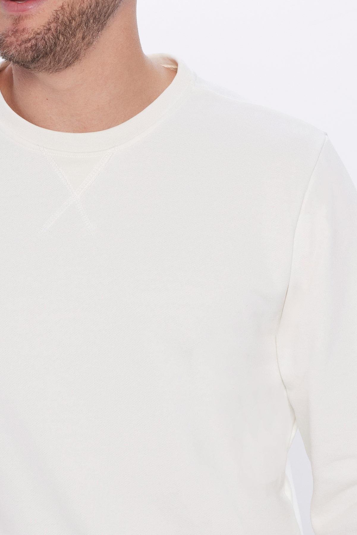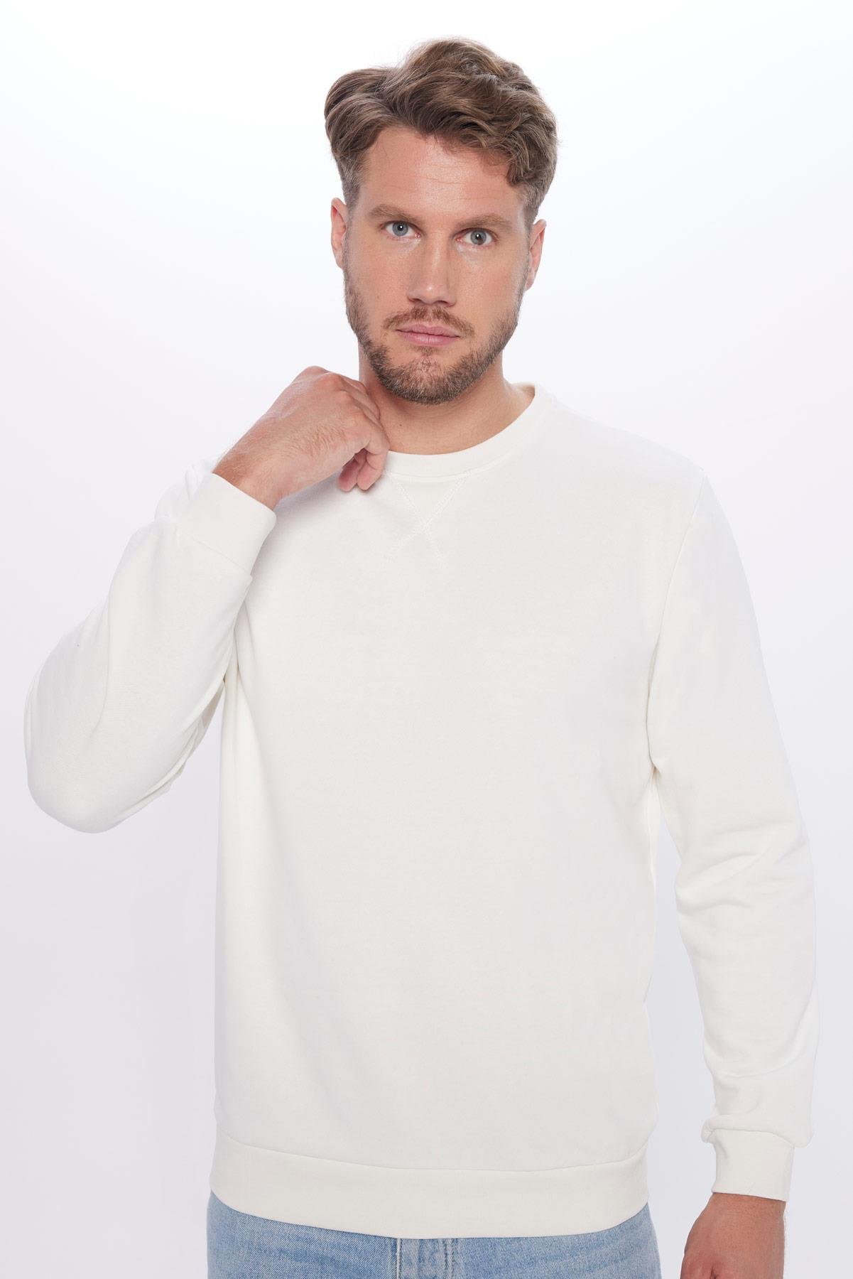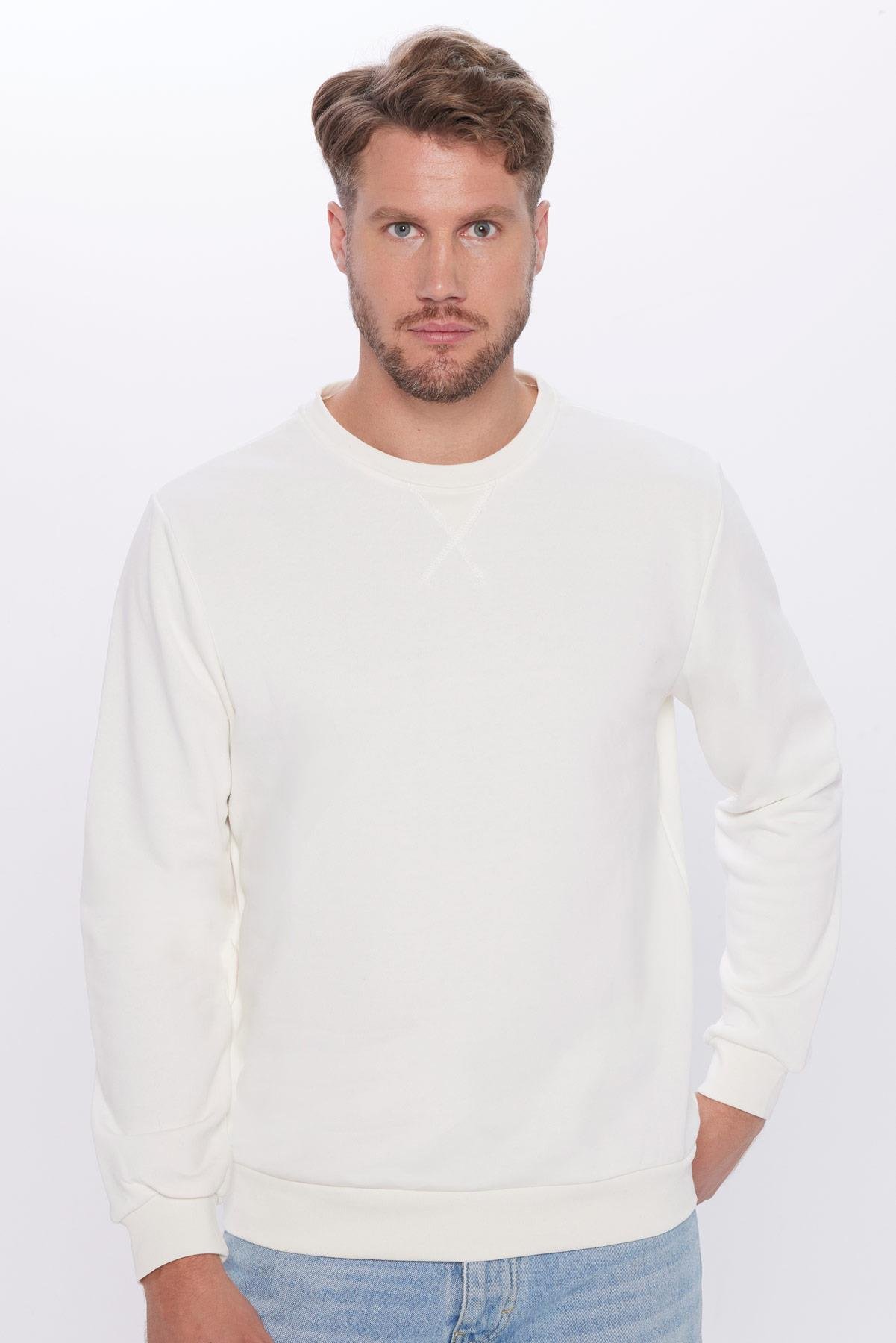 Unisex Oversize Geniş Kesim Pamuklu Basic Beyaz Bisiklet Yaka Sweatshirt