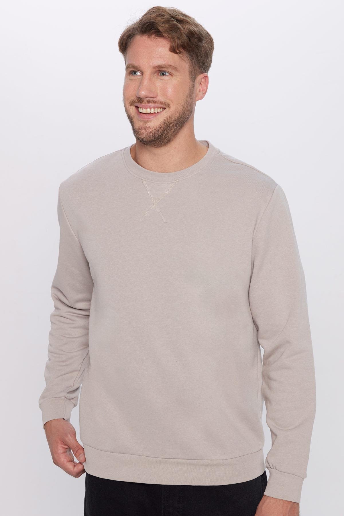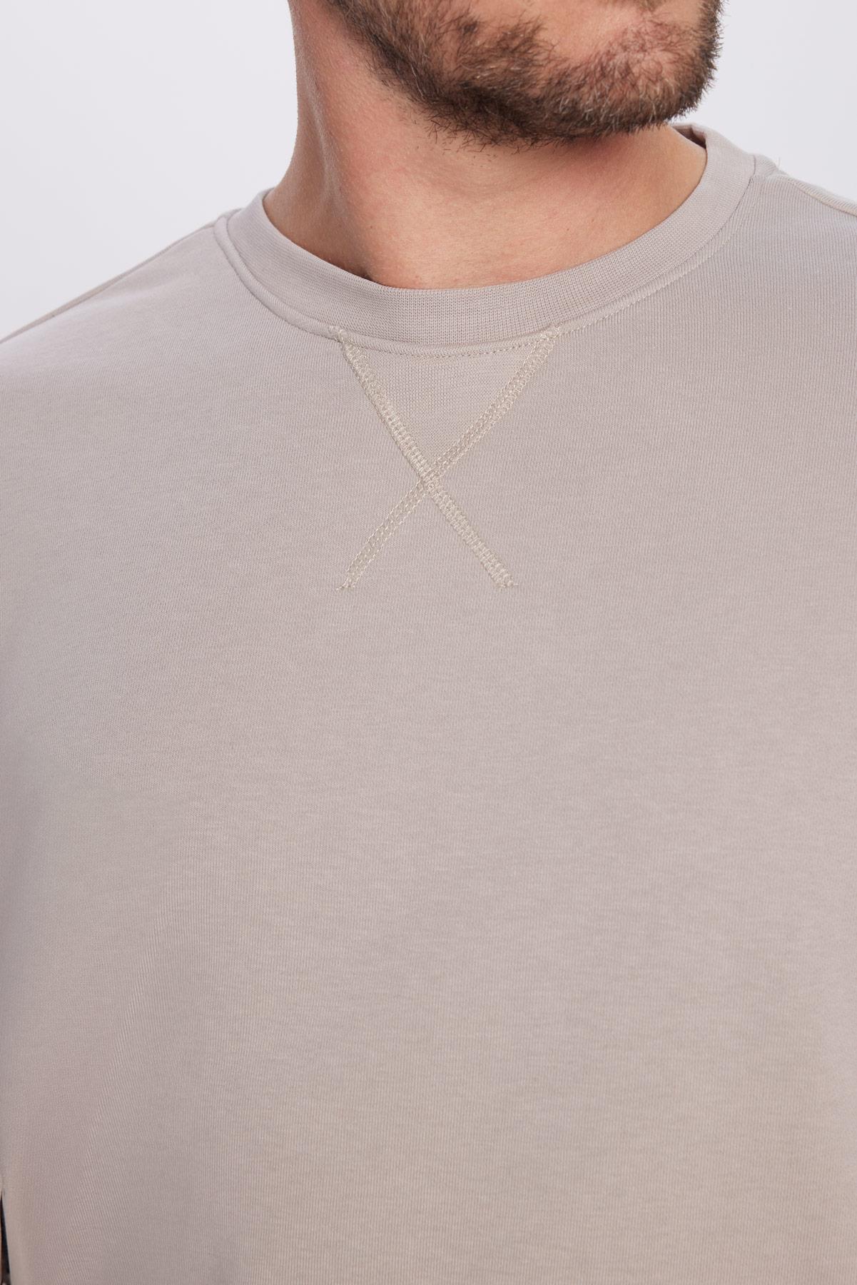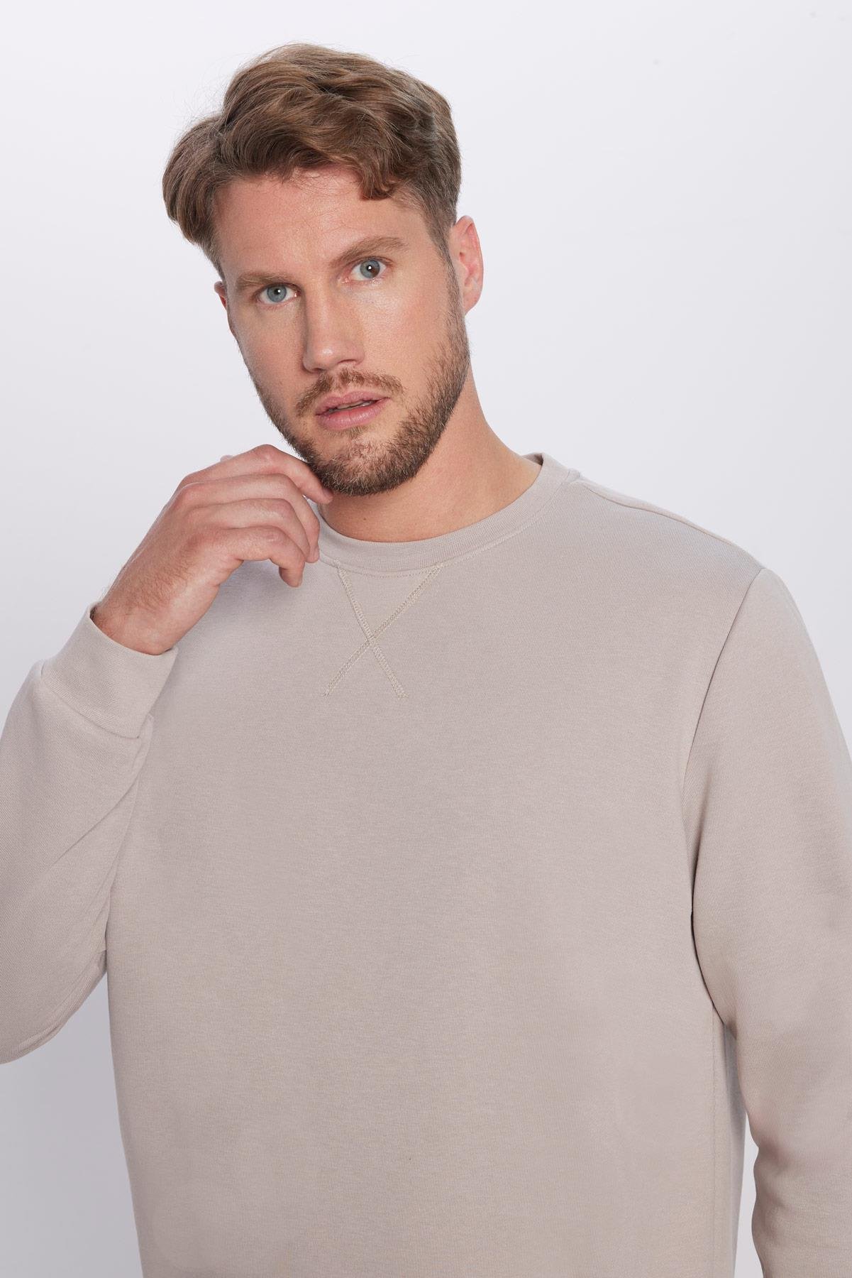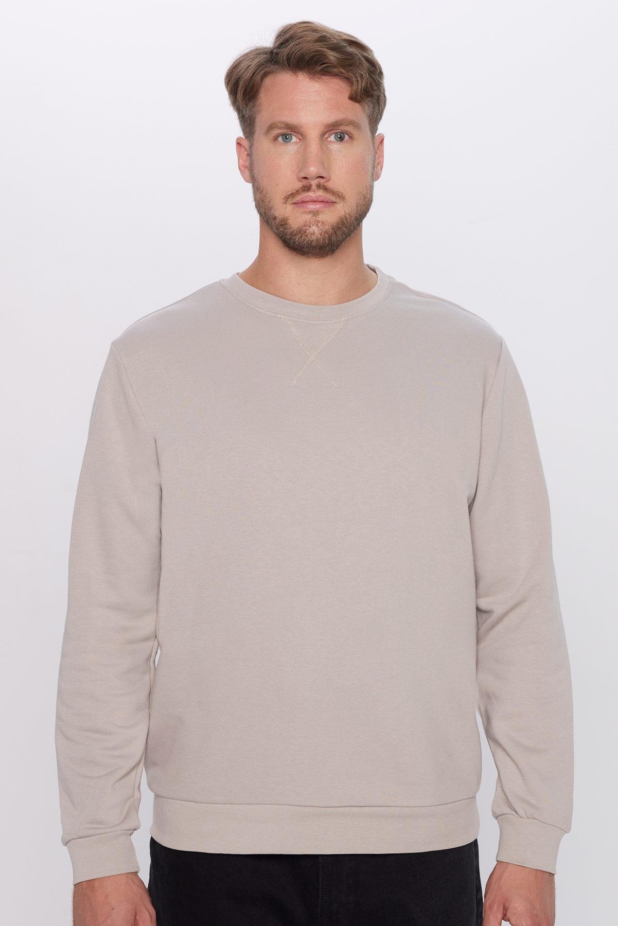 Unisex Oversize Geniş Kesim Pamuklu Basic Gri Bisiklet Yaka Sweatshirt