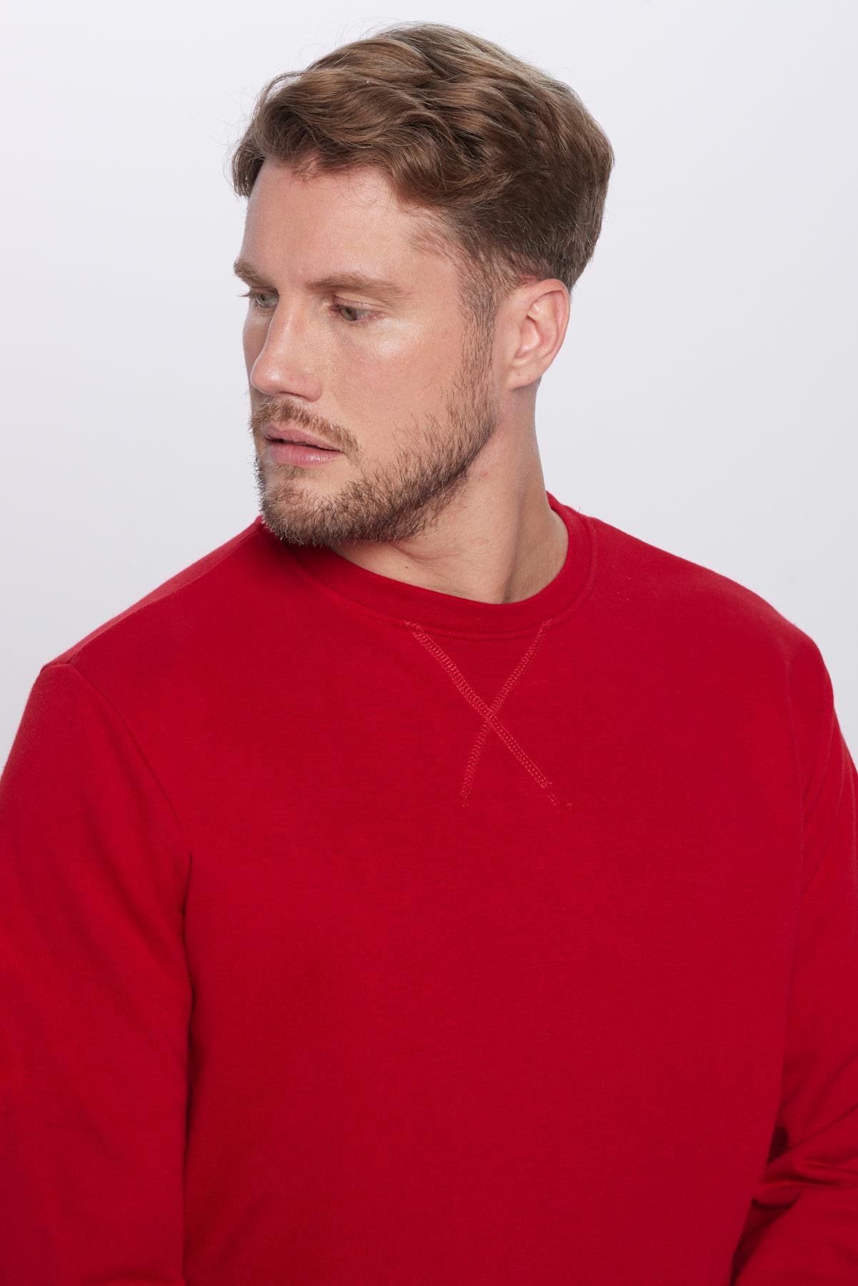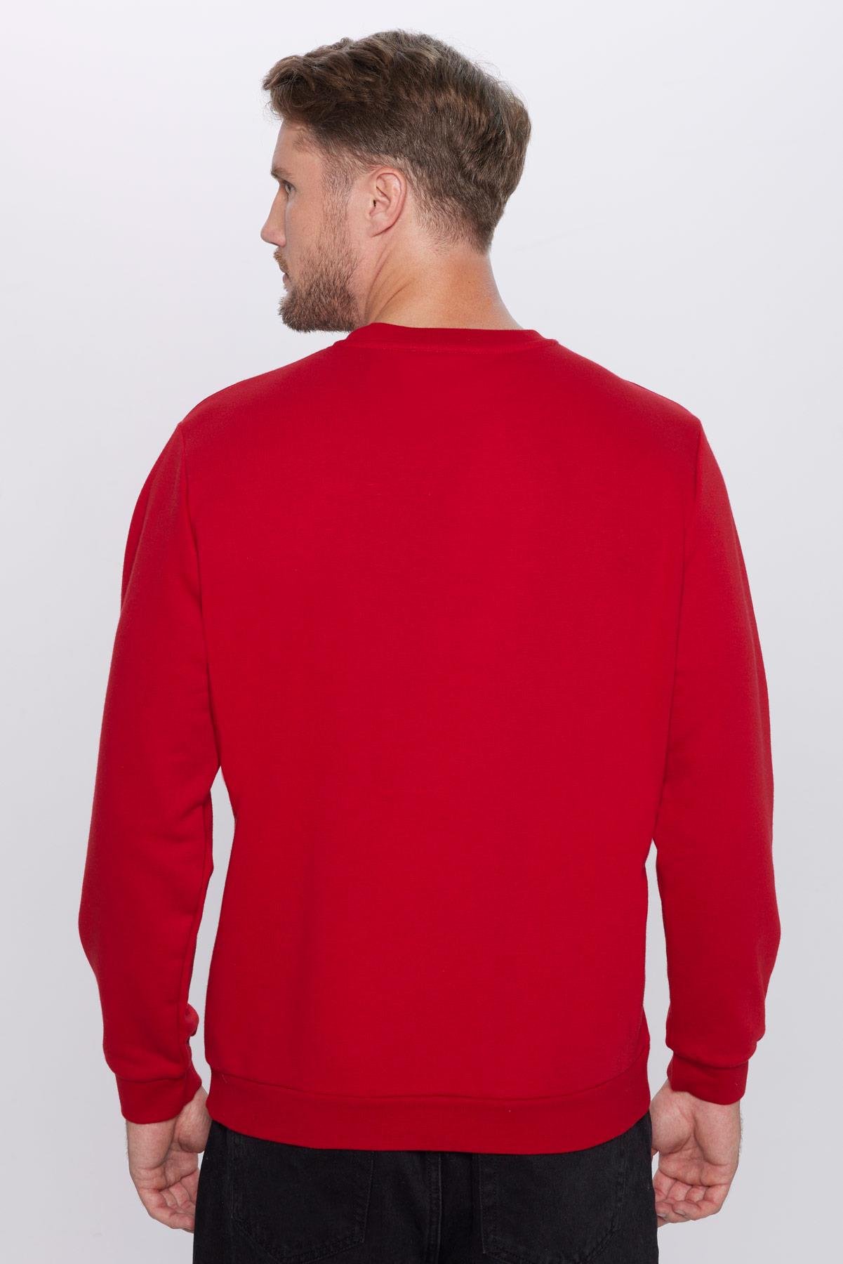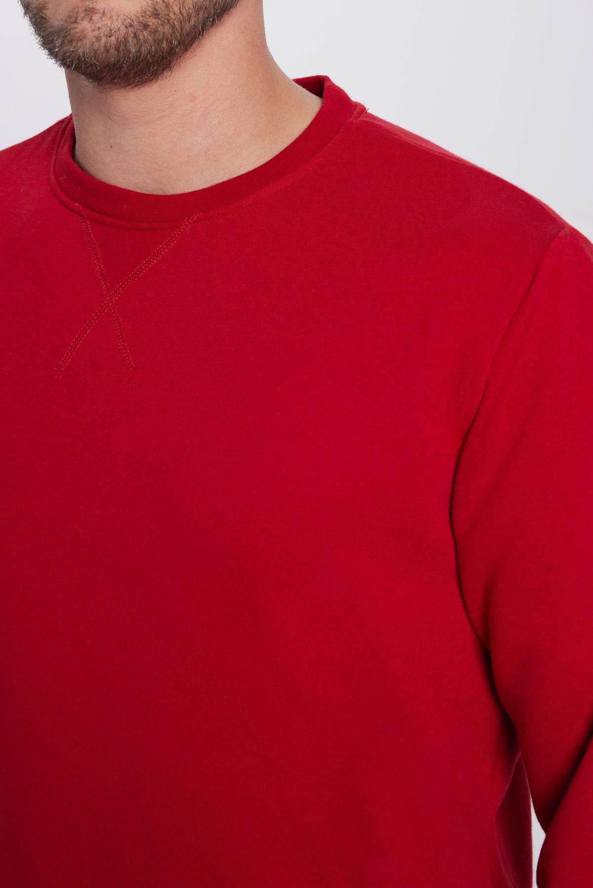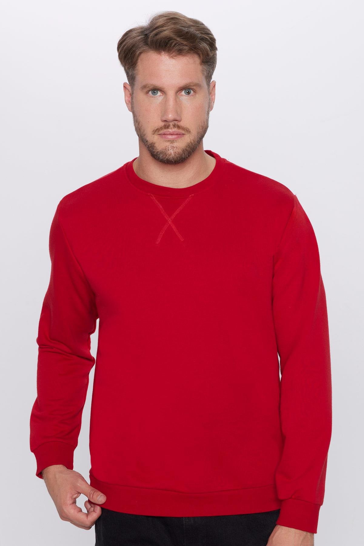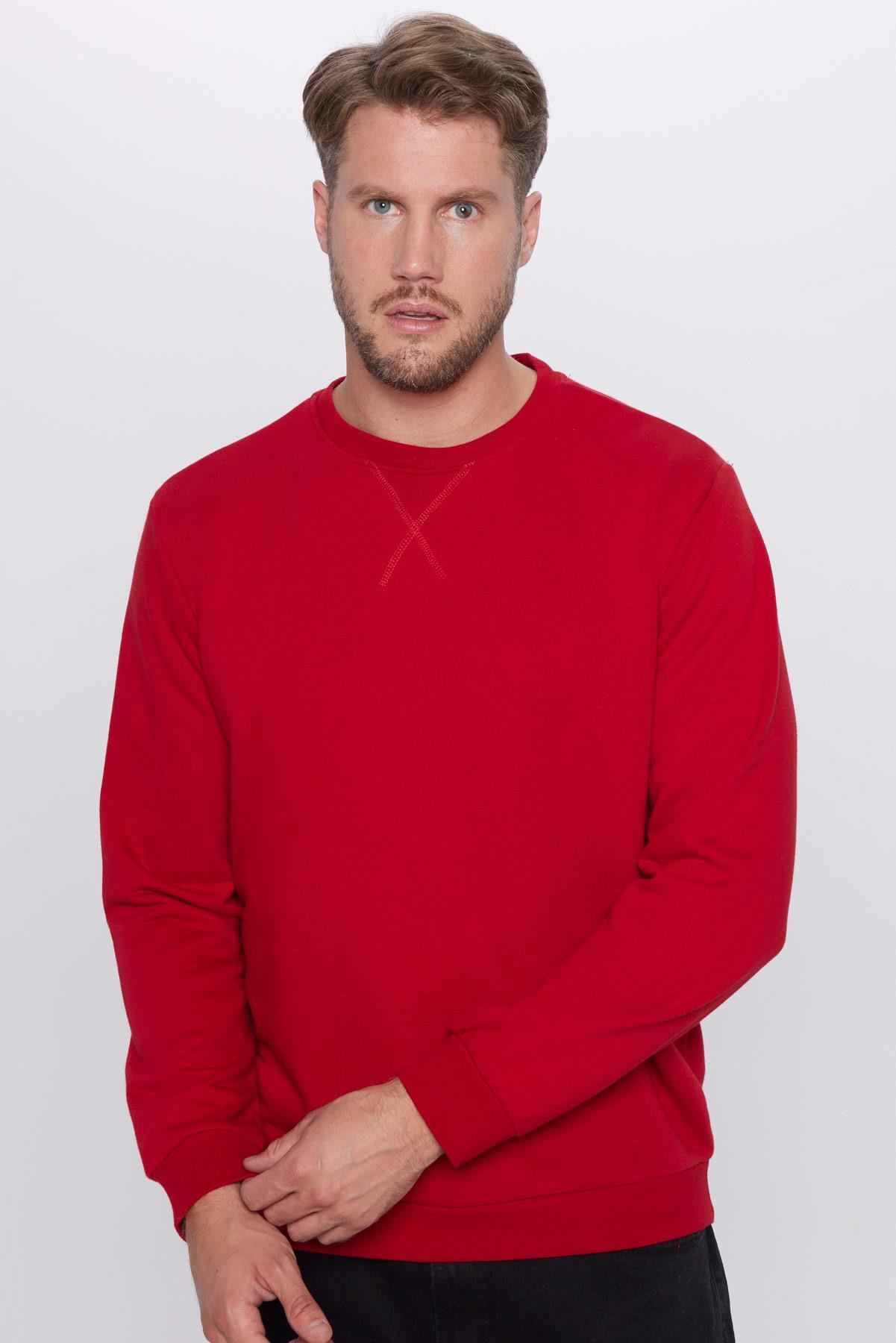 Unisex Oversize Geniş Kesim Pamuklu Basic Kırmızı Bisiklet Yaka Sweatshirt