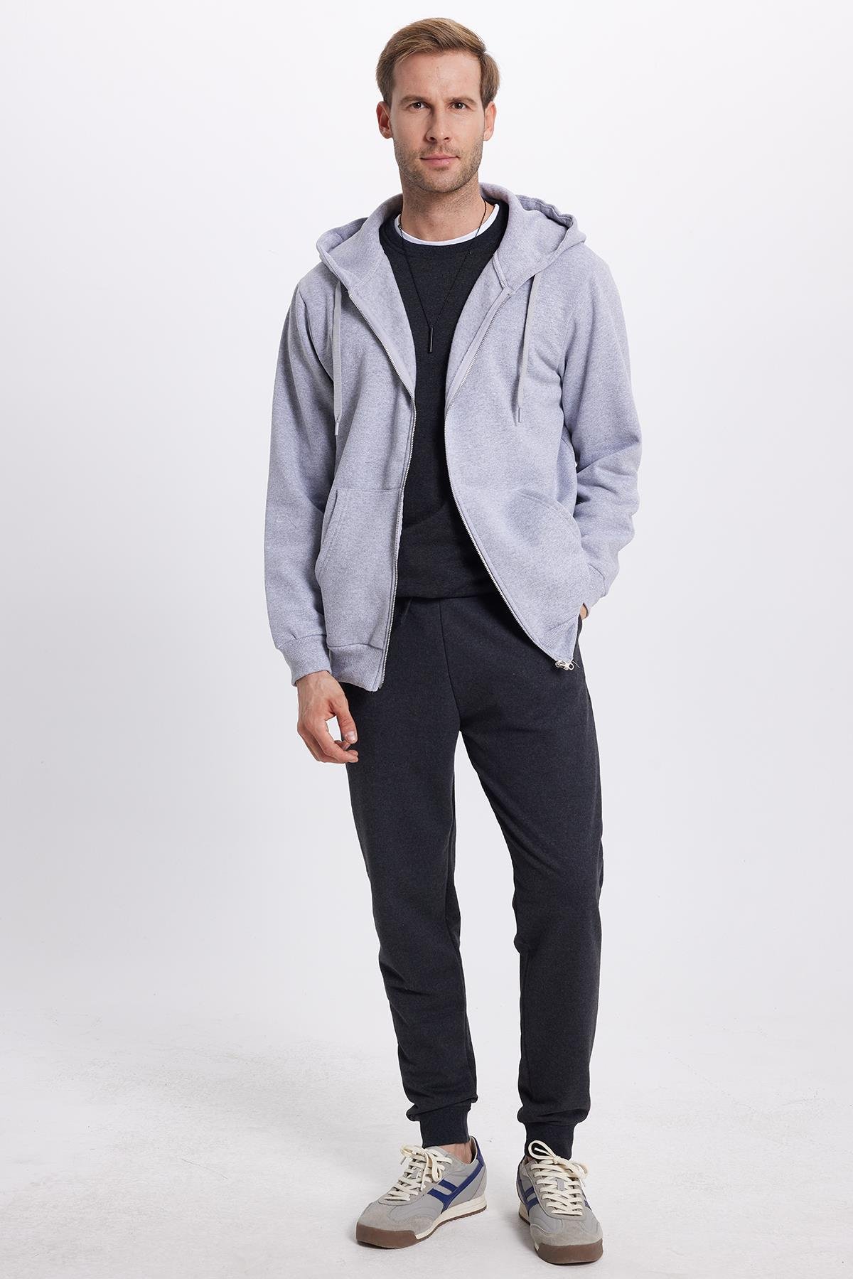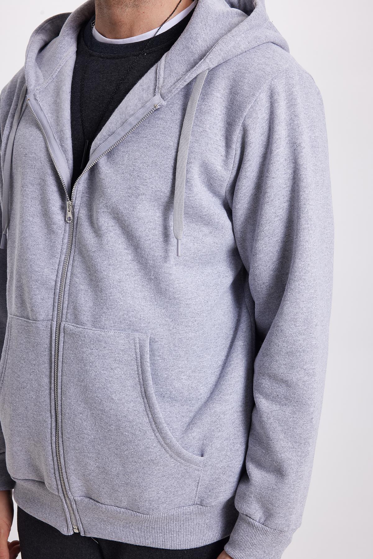 Unisex Relax Fit Rahat Kesim Pamuklu İçi Polarlı Çift Cepli Tam Fermuarlı Gri Kapüşonlu Sweatshirt (SW250033-076)