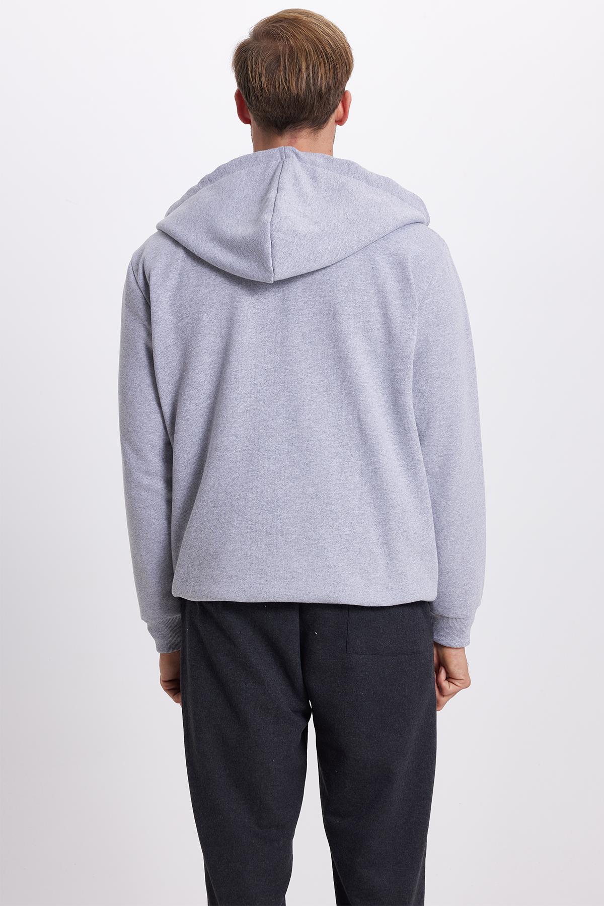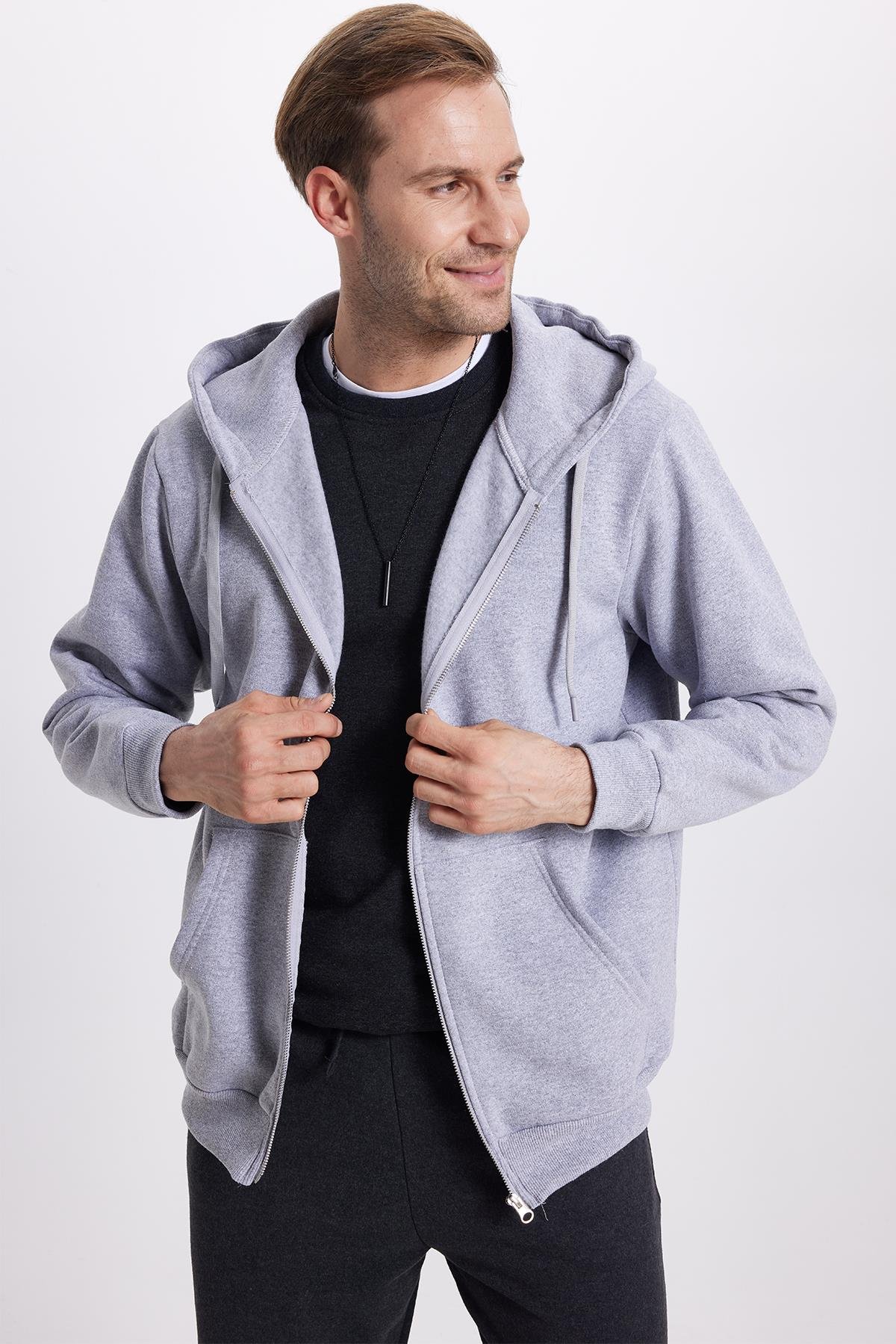Unisex Relax Fit Rahat Kesim Pamuklu İçi Polarlı Çift Cepli Tam Fermuarlı Gri Kapüşonlu Sweatshirt