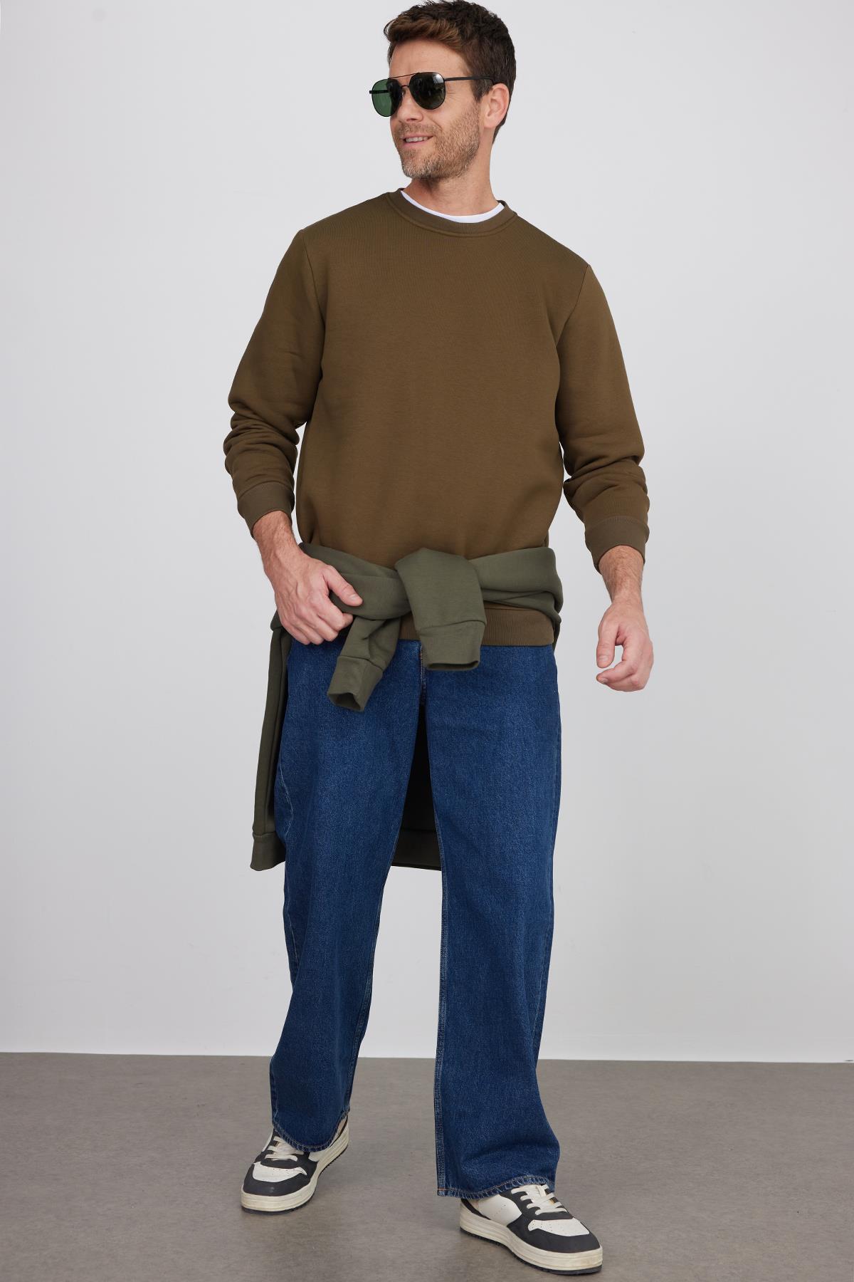Unisex Relax Fit Rahat Kesim Pamuklu Yumuşak Dokulu İçi Polarlı Yeşil Bisiklet Yaka Sweatshirt (SW220005-DO)