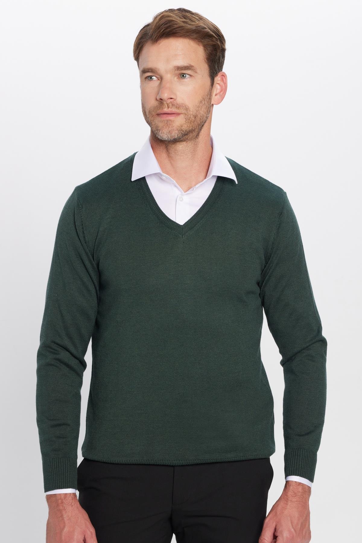Erkek Standart Fit Normal Kesim V Yaka Pamuklu Triko Kazak (KZ16016-MG1)