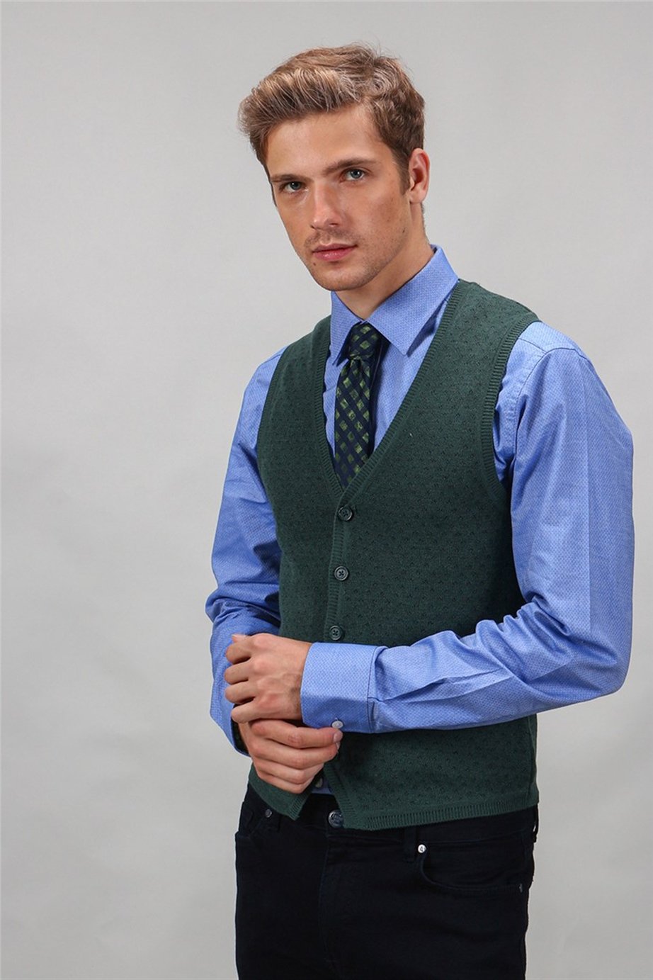 Erkek Desenli İndigo Yelek (YL180002-306)